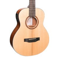 Martinez's incredibly popular Natural series provides unsurpassed value for money, tone and playability; making it the perfect choice for guitarists from all walks of life. Thanks to Martinez's open pore "breathable" finish, the MNS-1512 resonates and projects significantly more than instruments with a traditional gloss or satin finish. Constructed from traditional tone-woods, using modern techniques and materials, the MNS-1512 produces a mighty voice from a compact body - making it the ideal instrument for travel, busking or strumming at home. BRAND: MARTINEZ MODEL: MNS-1512-SOP INSTRUMENT: ACOUSTIC GUITAR SHAPE: TS MINI COLOUR: OPEN PORE NATURAL DEXTERITY: RIGHT STRINGS: 12 STRING TYPE: LONG LIFE PHOSPHOR BRONZE TOP: LAMINATE SPRUCE BACK / SIDES: MAHOGANY NECK: MAHOGANY FINGERBOARD: TECH-WOOD BRIDGE: TECH-WOOD BRIDGE SADDLE: 72mm SCALE LENGTH: 24.5" NUT WIDTH: 48mm MACHINE HEADS: MARTINEZ PICKUP SYSTEM: MARTINEZ K4T BUILT IN TUNER: YES FRETS: 19 WARRANTY: 1 YEAR INCLUDES CASE: NONE LENGTH: 1000mm DEPTH: 105mm WAIST: 225mm UPPER BOUT: 255mm LOWER BOUT: 360mm WEIGHT: 1.9kg