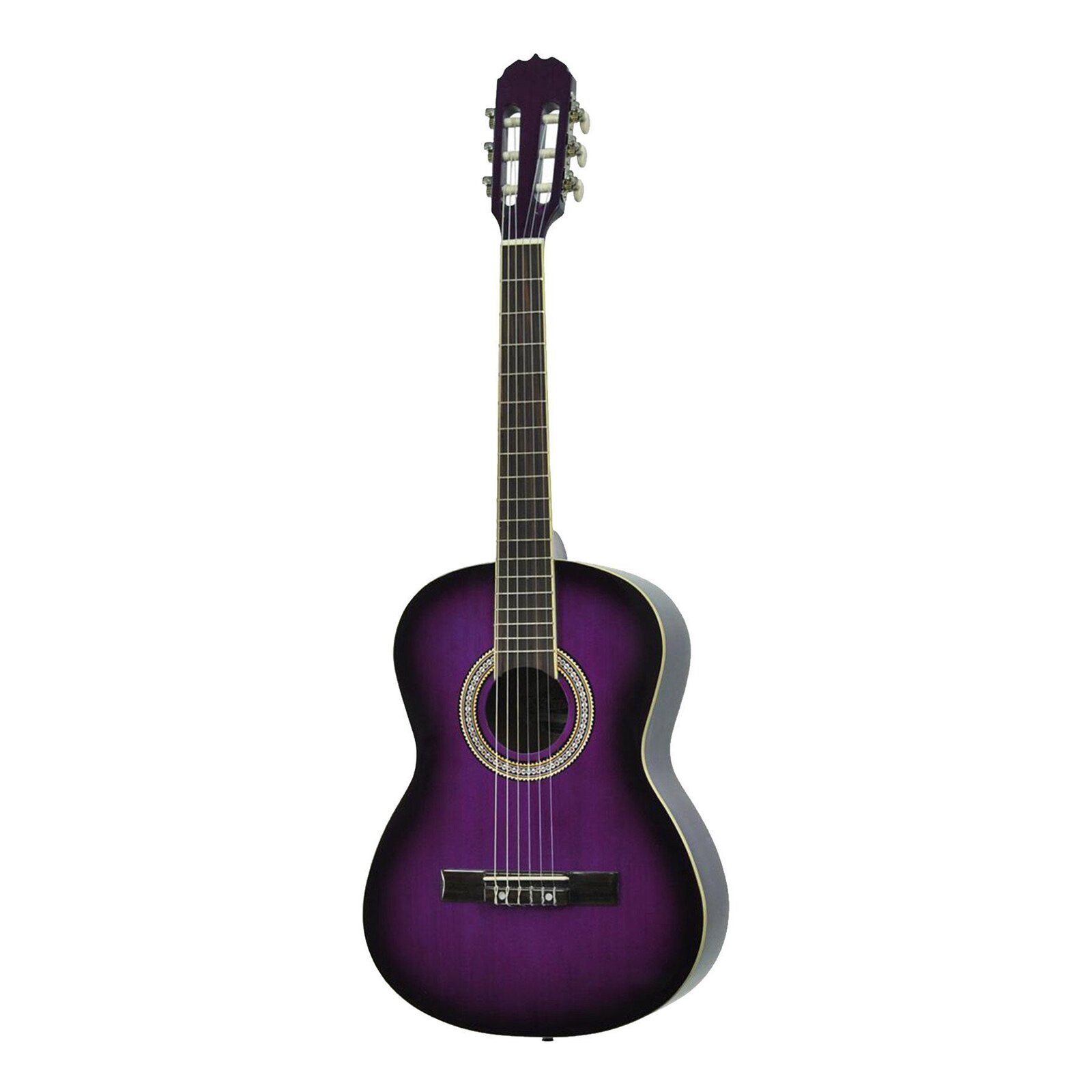 This 3/4 size Martinez MC-SJ36-PSB Classical Guitar is an ideal choice for the beginner or student. It features the Slim Jim neck that is narrower than the standard classical neck making it suitable for beginners, students and those with smaller hands. The narrower neck means the strings are physically closer together, alleviating the larger fingering stretches required on a standard classical neck. The guitar features a Spruce top and Agathis back and sides with Nato fingerboard and bridge. The guitar has an easy playing action, stable tuning and a pleasing tone. The high quality Purpleburst finish and binding, top off this affordable and excellent instrument. It is available in a wide range of colours and finishes.