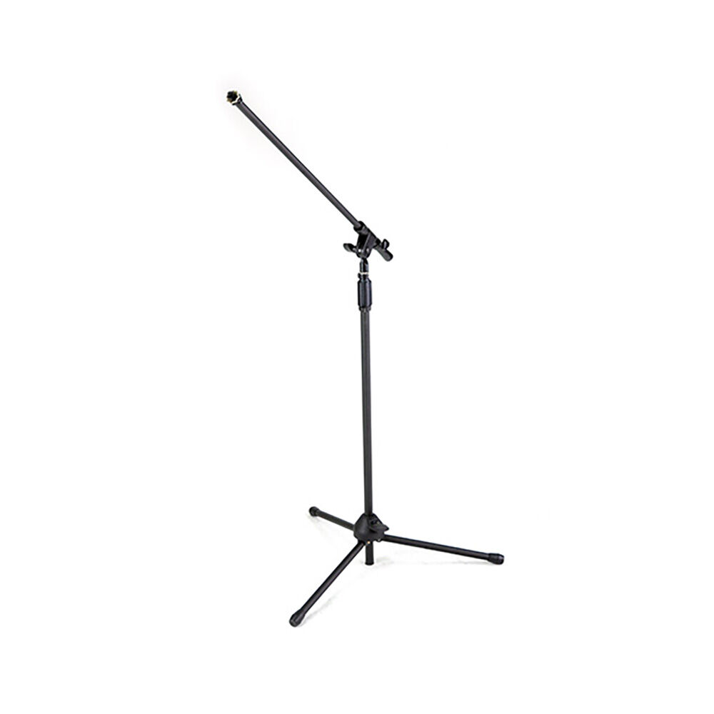 Boom stand – black. Adjustment allows front-to-back, side-to-side and up-and-down adjustment with just one knob. Durable tripod base and foldable legs for easy storage.