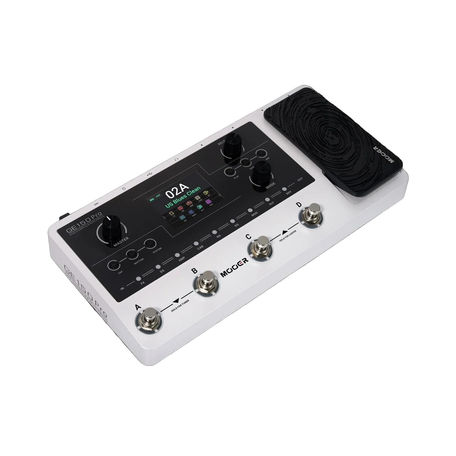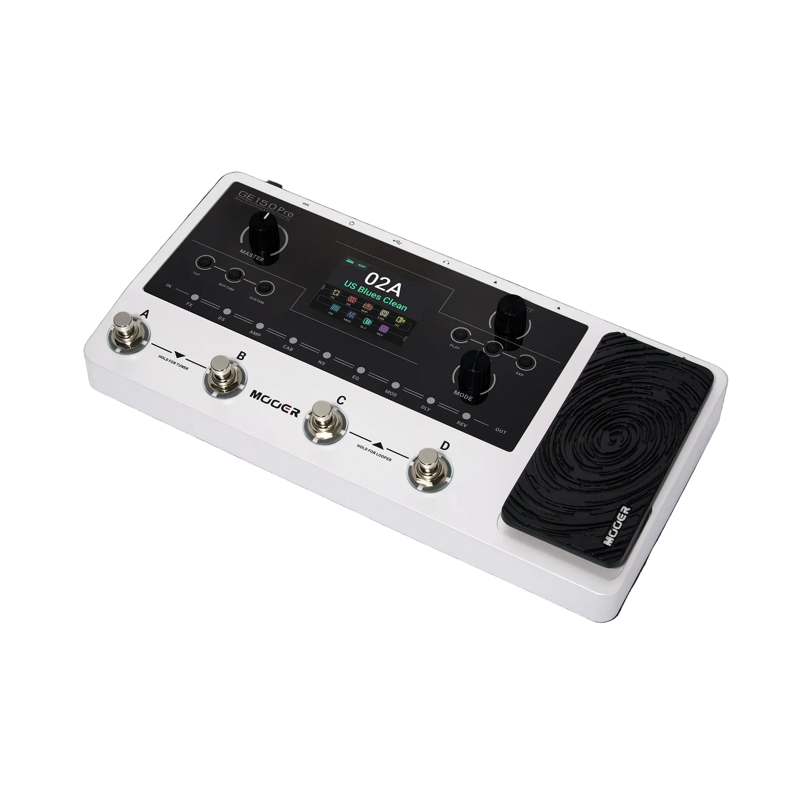 The Mooer GE-150 Pro Guitar Multi-Effects Processor builds on the original GE150, offering guitarists 200 factory effect presets, 55 preamps, and 26 cabinet simulations, with the ability to load up to 10 third-party IRs. A key upgrade is the addition of four footswitches for enhanced patch switching flexibility. The pedal features an intuitive UI, a 2.8" LCD screen, and a mappable expression pedal with a "toe tap" feature for switching between expression and volume control. It includes an 80-second stereo looper, 40 drum machine patterns, and 10 metronome modes, all manageable via the footswitches for seamless live performance. The pedal also has a USB-C output for real-time recordings and computer connectivity for managing presets and firmware updates. *Designed based on MOOER’s updated GE series design language *Four multi-purpose footswitches for browsing presets and triggering a wide range of functions *Available in two versions: GE150Pro (standard power version) and GE150ProLi (built-in lithium battery version, approx. 9 hours of battery life). *55 classic amp preamps based on MOOER’s in-house MNRS modeling technology *26 high-quality cabinet simulations *10 slots for third-party IR cabinet simulation files *200 factory preset tones. *Expression pedal that supports both parameter control and output volume control. *Built-in 80-second stereo LOOPER function. *Precise built-in instrument tuner *Built-in drum machine module with 40 drum rhythms and 10 metronome modes *Type-C USB interface supports connecting to a computer for tone editing, data management, and firmware updates *OTG connectivity that facilitates audio recording and playback. *AUX In interface supports line-in audio input, allowing connection to mobile phones or external audio players for practice. *Lightweight and compact, ideal for traveling musicians *Includes power adapter, USB cable, and quick guide