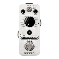 The Mooer MEP-GL Groove Loop micro guitar effects pedal packs an incredibly BIG sound into a very small package. The Groove Loop brings together both the Mooer Micro Looper and Micro Drummer into one pedal for the ultimate in a portable jamming companion. Both elements can be used independently from one and other or simultaneously. When used simultaneously the looper will be automatically synchronised to keep in time with the drum groove youve selected and an intro click will be played when recording the first loop to ensure youre in time with the groove. The tap tempo button makes adjusting the groove speed very easy and independent playback level controls for both the Drums and the Looper ensure the Groove Loop is a breeze to dial in and adjust on the fly. Features: Micro Looper and Drum Machine in one pedal 8 drum groove styles with 2 variations of each (16 drum grooves in total) 3 different modes: LOOPER, DRUM, LOOPER + DRUM Independent playback level controls for LOOPER and DRUM Tap tempo control for groove tempo Specs: Maximum recording time: 20 minutes Maximum number of recordings: Unlimited Sampling rate: 44.1KHz Sampling accuracy: 16 bit Input:1/4" mono audio jack (Impedance: 1MÎ) Output:1/4" mono audio jack (Impedance: 1kÎ) Power requirements: AC 9V DC adaptor, centre negative Dimensions: 93.5mm (D) x 42 mm (W) x 52 mm (H) Weight:157g