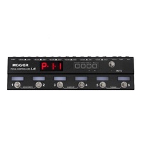 With the Mooer MEP-L6 Pedal Loop Controller, controlling your pedals has never been so easy and convenient. The L6 is a programmable 6 channel loop controller. After connecting your pedals to the 6 true bypass loops, the L6 provides a control hub right at the front of your pedalboard which can be operated in two different ways. In preset mode, any combination of multiple loops can be instantaneously engaged or disengaged at the touch of a single footswitch, without the need to tap dance all over your pedalboard. In this mode the Loop Controller has 6 banks, with 6 presets in each bank, giving a total of 36 possible preset pedal combinations available. In Live mode the L6 operates in a more traditional manor. Each loop has its own dedicated footswitch which simply engages and disengages its respective loop. This is perfect for the more old school musicians who simply want their pedals' footswitches conveniently relocated for easy access. Each loop has a backlit display panel which can be written on, or you can use the coloured stickers provided. This makes it easy to see at a glance which loops are engaged and disengaged. The L6 has a precise built in tuner based on Mooer's very popular Baby Tuner and a tuner output, should you prefer to use your favourite dedicated tuner pedal. Complete with two different buffers (pre and post), you don't need to worry about tone loss due to long cables. Specs: Input: 1/4"monaural jack (Impedance: 2M Ohms) Output: 1/4"monaural jack (Impedance: 100M Ohms) Power Requirements: AC 9V DC adaptor (centre negative) Current Draw: 350mA Dimensions: 370mm (D) x 97mm (W) x 33mm (H) Weight: 1.05kg