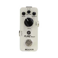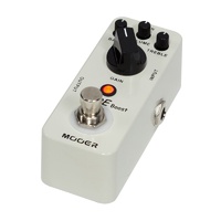 The Mooer MEP-PBO Pure Boost micro guitar effects pedal packs an incredibly BIG sound into a very small package. The Pure Boost pedal produces +20dB of clean boost with +/- 15dB 2 band EQ for nice embellishing of the original tone. Features: Volume: Adjusts output volume Bass: Adjusts level of bass Treble: Adjusts level of treble Gain: Adjusts the gain The pedal switching is True Bypass, so the sonic integrity of your instrument is never lost. Rugged full metal casing and quality switching in a small and exquisite design. Dimensions (HxWxD): 93.5 x 42 x 52 mm DC 9V Centre Negative Power Supply (sold separately)