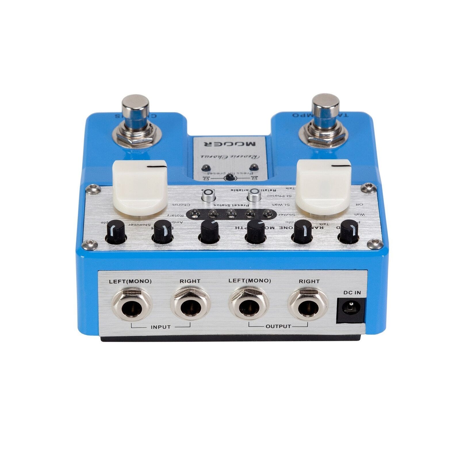 The Mooer MEP-REVCH Reverie Chorus is a compact dual effects pedal housing rich combined tones based on the 5 basal effect modes: Chorus, Rotary, Ambiance, Shimmer and Multiple. Every mode respectively adds 8 kinds of modulated effects. You can add Wah in