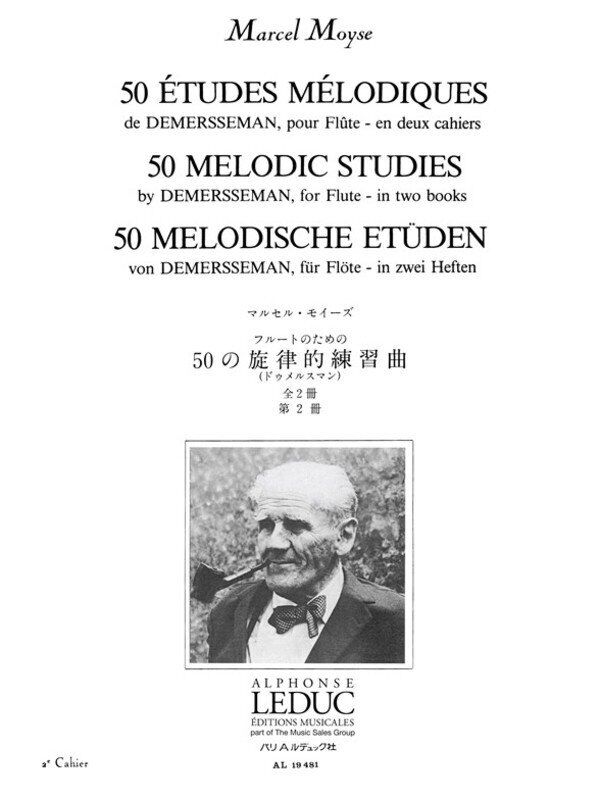 French flautist, Marcel Moyse (1889-1984) studied at the Paris Conservatoire before becoming a renowned performer on the instrument. He was also responsible for training a brilliant generation of Flute players and his combined experience and expertise created the well-informed compilation, 50 Melodic Studies by Demersseman, for Flute. With notes in French, English, German and Japanese, Moyse's studies are accessible and versatile. Focus in the second volume is given to fingering, phrasing, tempo, breath control, articulation, intervals, range, and ornamentation, among other musical aspects. 50 Melodic Studies for Flute, based on studies by flautist, Jules Demersseman (1833-1866) is essential to the technical progress of advanced flautists. 50 Melodic Studies by Demersseman Vol. 2 Composer: Marcel Moyse Publisher: Alphonse Leduc Instrument: Flute
