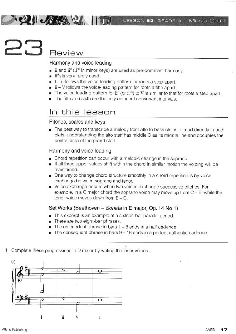 Collection of 20 Music Craft lessons to build your skills in musical foundations, theoretical concepts and aural skills. Each lesson features a detailed explanation of key ideas, practice questions and two CDs of aural examples. Use this Workbook in conju