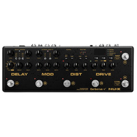 Cerberus is a multi-function effect pedal which can be used standalone or with the 4 cable method and comes packed with extraordinary features including inside routing, IR loader, analog overdrive & distortion and digital effects. You can use Cerberus as a stand-alone device to prepare your setup and control as a stomp-box chain and/or save any combinations including routing as a preset and recall by a single click. You can add your essential gears into the chain with using 4 cable method no matter which equipment you use. Cerberus also offers MIDI control to organize your own effect pedals and improve your effects control at the same time. Analog Effects: We've put together 2 selected analog Drive / Distortion pedals, modulation effects and delay & reverb effects. All these sounds and effects were improvised both from the all-time-classic and newly most-liked gears. Overdrive (Blues Breaker): Cerberus Overdrive sound is a tribute to the 70's Little Wing / Hendrix playing-style.  The technology is only about 10 years ago but it quickly became one of the most-preferred overdrive sounds on the market. The Overdrive Channel simply takes your guitar tone to the next level without adding mid-frequencies or any other unwanted characteristics inherent in "Tube Screamer Style" circuits, and provides a transparent overdrive sound.  Any pedal can sound amazing but when you create an effect chain, harmonizing the sound is critical for maximum efficiency. Distortion (Brown Anger): If you prefer high gain distortion with a Classic British flavor, rich bass responses, thick mid-frequencies and a balanced treble response, Cerberus Distortion will soon become one of your all-time-favorite sounds. We've also considered compatibility in respect to the Overdrive and Distortion channels. Whether you use distortion standalone or combine with overdrive, when you hit your distortion switch, you'll feel the classic JCM touch on your sound. Drive section has analog circuitry with digital control parameters and it remains analog (AD/DA converter starts from the MOD FX section). Modulation Effects: Tremolo: Cerberus Tremolo creates authentic vintage tremolo guitar sounds and it is an easy-to-use compact effect but it offers wide parameters for precise effect tailoring. Phaser: It's warm, organic, and rarely harsh and burnt-orange phaser. From simple and warm,  to tuneful character melodic? Sleepy psychedelic swirl, with rich high-end harmonics, Cerberus's Phaser is a joy to use. U-vibe: For guitarists who really dig the swirling vibes sound-- especially in "vintage" mode, Cerberus's U-Vibe offers a massive swirl, that's true, it's more than "feeling the U-Vibe" sound, you can jump on it. We made sure our U-Vibe effect included the classic favorites, and Cerberus has them ready Chorus (CE - Analog, SC - Digital, ST - Modern) CE Chorus : This chorus type is from early years of Chorus effect. There is no any other vintage sound without an analog chorus touch. SC Chorus: SC Chorus adds a dreamy chorus sound and creates an ambient guitar tone. That's another alternative chorus if you like a digital touch and to create and ensemble chorus effect. ST Chorus: This is the most common chorus effect. From clean arpeggios or strumming and fat-drive power chords to sparkling distortion killer solos, Cerberus ST Chorus fills in the gaps to complete your sound. Delay (60's, 70's and 80's) 60's Delay (Tape Delay) 55ms - 550ms: Tape delay effects that never get old.  We picked a heavy-lift tape echo and shrunk it to add one of the delay modes in Cerberus. In 60's Delay mode you can create aged over-saturated repeats -- the way tape does! 70's Delay (BBD) 40ms - 400ms: This mode can handle all or your performance needs if you prefer to use analog-style repeats. It has a decreased modulation so you feel really the popular analog-like BBD sound repeats. 80's Delay (Digital Delay) 80ms - 800ms: 80's Delay sounds fantastic is super easy to use.  Its simplicity makes it the best mode if you are already using modulation effects, and all you want are crystal clear repeats. TAP TEMPO All of the Delay effects provide an original sound and each one has its own delay speed range. When TAP TEMPO is activated, the Time Knob controls the repeat quantize and TAP TEMPO delay range is 125ms - 1500ms for all delay types .  And while you tweak the Time Knob , it still allows you to have the original delay time range to emerge infinite feedback , run-away/oscillation as physical tape echo and BBD delay. Reverb (Plate, Hall and Spring) Plate Reverb: Plate reverb helps you to have the touch of reverb. If you are in need of a deep ambiance, long decay parameters will give you the deepest but also versatile and organic reverb sound. Hall Reverb: It offers the spacious feeling of a well-architected performance hall with natural reflections in a studio quality reverb effect. Spring Reverb: Based on a tank sound, get the warmth and richness of a vintage reverb unit with Cerberus's Spring Reverb function. Impulse Response Loader Cerberus has stereo outputs: one is a dedicated Output with speaker simulation for direct connection to the mixer or your audio interface. When using both Outputs, you can activate or deactivate by pressing the Speaker Cab Sim button.  This comes in handy when running 2 amps. The headphone output is cabin simulated and ready-to-play. It can run any 3rd party IR files as well. Features and Requirements of Cerberus's IR loader: Built-in IR: High-Quality 4x12 Closed Back Cabinet Zero Latency 44.1kHz Sampling Rate, 24-Bit Max Resolution: 512 Samples Nux factory cabs and 3rd party IR files can be loaded to Cerberus via Cerberus Editor software (check the support page) 4 Cable Method Connection You can connect your all-time-favorite gear to Cerberus by placing it between analog and digital sections. You can use any combination of amps or pedals you desire. More Features An integrated loop switcher , IR loader , kill dry function, 