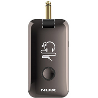Mighty Plug is a handy silent-play gear for both guitarists and bassists, featuring various effects, modeling amplifiers, and Impulse Response (IR) cabinet models. With built-in acoustic guitar IR models and acoustic amps, you can play regular electric guitar to simulate acoustic guitar. The embedded Drum patterns can let you play along with your favorite music styles. To remotely control Mighty Plug with a smartphone or tablet via Bluetooth, please install the MightyAmp app. Features: Guitar and Bass Modes Acoustic Guitar Simulator with Impulse Response Acoustic Guitar Emulation 13 Amplifier Models 20 Impulse Response Files (Speaker Cabinet and Acoustic Guitar) 19 Variety of Effects Noise Gate NUX TS/AC True Simulation of Analog Circuit Physical Amplifier Modeling Algorithm Rechargeable Li Battery 3 Hours Playing Time Dual Mode Bluetooth 4.2 Drum Beats: 10 Patterns and Metronome Support High-Quality Modeling Mighty Plug offers the ability to combine effects, amps, and cabinets to both guitar and bass players. Each instrument part has its independent pack for amplifier models, speaker cabinets and effects. Taking advantage of using headphones; all the effects are designed for surround sound. 1 Amplifier, 2 Modes, 7 Channels Guitar Mode Guitar Channels: CLEAN, OVERDRIVE, DISTORTION, ACOUSTIC GUITAR SIMULATOR Bass Mode Bass Channels: POP, ROCK, FUNK 13 Amps + 20 IRs + 19 Effects Bluetooth Mode You can choose the Bluetooth connection AUDIO mode to play along with your favorite music only. Or APP mode to control the effects and customize your presets, and store it. You can also playback any music when APP mode is selected. The audio mode option is useful when you connect any Bluetooth device that you can not install the Mighty Amp application. MightyAmp Mobile App Mighty Plug's Bluetooth can do more than just audio playback. You can also control the amplifier with the MightyAmp mobile application. There are loads of pre-amp models and guitar cabinet IRs and effects available with our FREE MightyAmp app. And the best part is that you can save all the changes you made to a channel for further use. Download on App Store (iOS) or Google Play (Android) Never Lose Your Ideas; Get Recorded! You can record your instrument without using any audio interface. Mighty Plug has a built-in audio streaming function, so you can connect the Amplug directly to your computer with a Micro B USB cable, and it is ready to play and record. A driver free* solution that helps you to produce music with direct connection. You can use the headphones output for monitoring, you will hear both your guitar and the audio from your computer. *For Windows 10 and MAC computers. (If you are using Windows 8.1 or lower versions, please download the NUX ASIO Driver and install to your computer.) Perfect For All Styles Ultimate Compatibility Mighty Plug works perfectly with active/passive electric guitar and bass, and acoustic-electric guitars with piezo or magnetic pickup. The signal is crystal clear. Also, the compact and light-weight design allows you to play comfortably on any guitar and bass body types, including acoustic guitars and ukuleles. Long Battery Life and ECO Mode When you turn ON the Mighty Plug, it will run in ECO mode as the default. If there is no headphones connected for 2 minutes, or there is no signal (from guitar, Bluetooth or USB) for 6 minutes Mighty Plug will turn OFF. * For Android Users: Usually, connecting your devices to the Mighty series amplifiers is the same as connecting a Bluetooth speaker. Turn on the Bluetooth, search for the devices, select the amplifier, and it's done. If you are having a connection problem: 1. turn on the "GPS Services" on your device, 2. reopen Mighty Amp app 3. allow it to turn Bluetooth on. Now your device is successfully connected, only one step to go: Go to Settings (at the right bottom). Normally you can see your device's name here. If it's not, go to Select Device and choose your amplifier. All set! Now you can activate the MIDI control, tweak the parameters and control your NUX amplifier with your mobile device. ** Free Firmware Updates and Manuals are available by clicking here then selecting "Support"