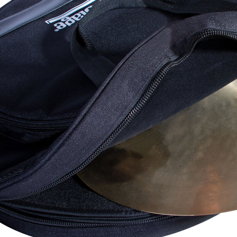 Keep up to four cymbals free of cracks and dents with our CB3500 Cymbal Bag. It's weather-resistant exterior, padded interior, and felt dividers protect gear from moisture and impact damage. Adjustable backpack straps enable hands-free transportation while two top handles facilitate ergonomic lifting and carrying. FEATURES: Holds, protects, and transports four 22" cymbals Handle and backpack-style straps for comfortable lifting and carrying Inlcudes felt spacers to isolate cymbals and prevent them from damaging each other Two-pull zipper opens or closes at either end or any point between for ease of access SPECIFICATIONS: Diameter: 23.25" with 3.75" Max opening Included: Felt Spacers Material: Heavy-duty nylon exterior and padded, lined interior Colour: Black