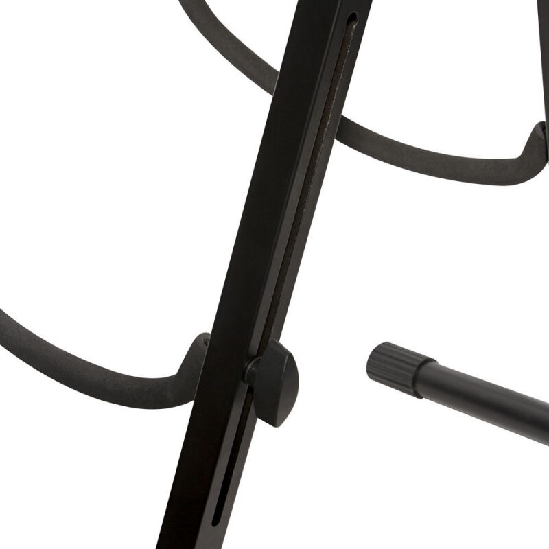 Complete with a fully and independently adjustable lower yoke, The On-Stage CS7201 Cello Stand delivers stage and studio secure access to the heaviest hitters in the string family. Designed to accommodate either cello or double bass, the CS7201 features EVA padding at all contact points for instrument protection, non-slip feet for secure placement and rear hook/attachment for handy, forget-free bow access. Features: Holds most cellos and double basses Fully and independently adjustable lower yoke EVA foam protects your instrument Non-slip rubber feet Rear hook to hold your bow Specifications: Height Adjustment (lower to upper yoke): 28" - 52.5" Base Spread: 22.5" Weight Capacity: 60 lbs. Colour: Black