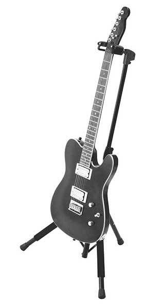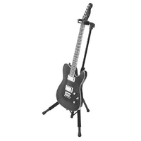 The GS8100 is built for the pros! Improved features include an upper flip yoke, which flips forward for use and locks firmly in place. The yoke effortlessly folds back in place, making the stand very compact for travel or storage. Our patent-pending ProGripsystem holds your guitar in and keeps it from falling. Steel tubing with oversized walls means enhanced strength and durability gig after gig. The heavy-duty steel tripod base, with Toughened Glass-Reinforced (TGR) nylon leg housing means this stand is built to last! Stand is height adjustable to accommodate the size of your guitar so that the body gently rests against the legs padded back bumpers. Height Adj.: 30"- 43" Weight Capacity: 36 lbs. Padding: Velveteen Rubber Construction: Steel and reinforced nylon leg housing and clutches; aluminium upper shaft Tubing: 17mm/25mm Colour: Black Powder Coat Finish