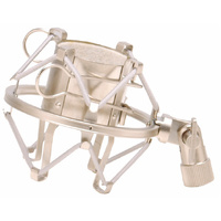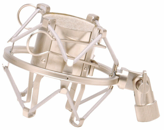 The perfect choice for vibration free microphone support! The OSMY410CG fits most large diaphragm condenser mics (42-48mm diameter). The diecast steel adapter with 5/8" - 27" threads features an angle adjustment with locking knob and will attach to any mic boom. Clamp interior is lined with cloth to protect your mic. The OSMY410CG is available with a champagne finish or a black finish (OSMY410).