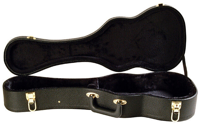 Enjoy reliable hardshell protection for your tenor scale ukulele while retaining the instrument's inherent portability. This light-weight yet heavy-duty Tenor Ukulele Case is sized to fit a tenor uke with a rigid molded shape that keeps the body secure and provides stable neck support. It features a plush-lined interior to safeguard the instrument's finish, an accessories compartment, and a moisture-resistant exterior to defend against the elements. FEATURES: Sturdy hardshell case delivers secure, stable protection for a tenor ukulele Rigid wood case and weather-resistant vinyl protects the ukulele from damage and moisture Plush interior lining provides a soft cushion that preserves the ukulele's finish Accessories compartment keeps picks, capos, tuners, and strings with your ukulele SPECIFICATIONS: Application: Tenor Ukulele Material: Plywood w/ black vinyl covering Interior Lining: Black plush Latches: 2 (1 locking) Hinges: 3 Hardware: Gold-plated Length: 27" Depth: 3" Lower Bout: 9.25" Upper Bout: 8" Colour: Black