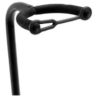 A great value! Our best seller combines a special formula velveteen rubber with extra thick tubing. It features a removable lower stepped yoke, security strap on the upper yoke, and adjustable height. Perfect for any guitar. Applications: Single Guitar Stand Padding: Velveteen Rubber Height Adj.: 19.25"- 24" Leg Housing: Heavy Duty Sheet Metal Tubing: 17mm/22mm Colour: Black Powder Coat Finish