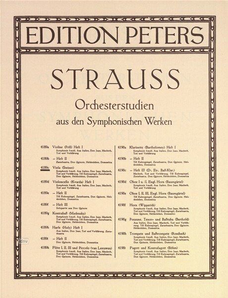 Orchestral Studies For Viola Composer: Richard Strauss Publisher: Edition Peters Instrument: Viola Pages: 1