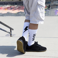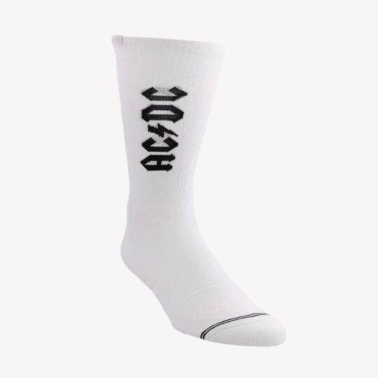 For those who love your socks to rock, the AC/DC lightning logo crew are for you. The Australian rock band AC/DC was formed in 1973 by two Scottish born brothers, Malcolm and Angus Young. Their music has been described as hard rock, blues rock, and heavy metal, but the band themselves call it simply "rock and roll" The band has sold over 200 million records worldwide and were inducted into the Rock and Roll hall of fame in 2003. FEATURES: 1 pair soft combed cotton blended with moisture wicking polyester made from recycled plastic bottles Spandex added for stretch and comfort Terry cushion sole extends above heel with toe seam buried in cushion for padded comfort 2 x 1 rib leg with knit in "Lightning Strikes" logo and bolt Elasticized arch compression to keep sock in place SPECIFICATIONS: Pattern: AC/DC "Lightning Strikes" Colour: White Type: Crew Size: Large (Men 9-12, Women 11-14) Made From: 51% Recycled Polyester, 36% Cotton, 11% Nylon, 2% Spandex Care Instructions: Machine wash and tumble dry. Package: 1-Pair