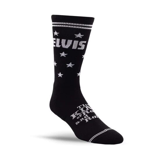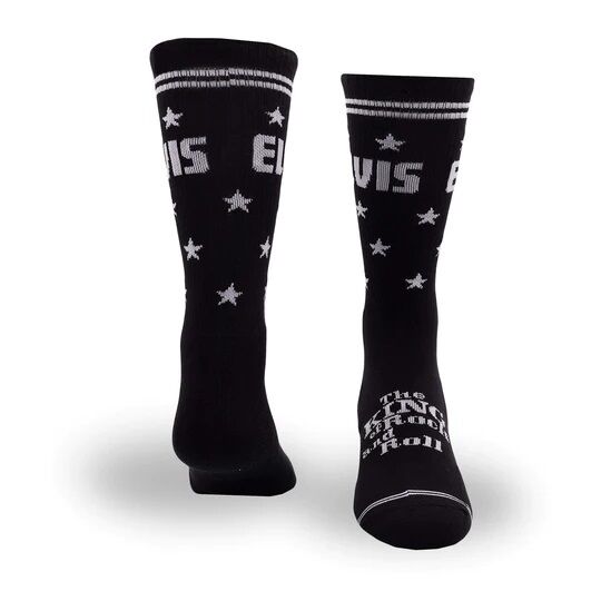 Feel like a star in these Elvis "King Of Rock And Roll" socks. Dubbed the "King of Rock and Roll" Elvis Presley is regarded as one of the most significant cultural icons of the 20th century. His energized interpretations of songs and sexually provocative
