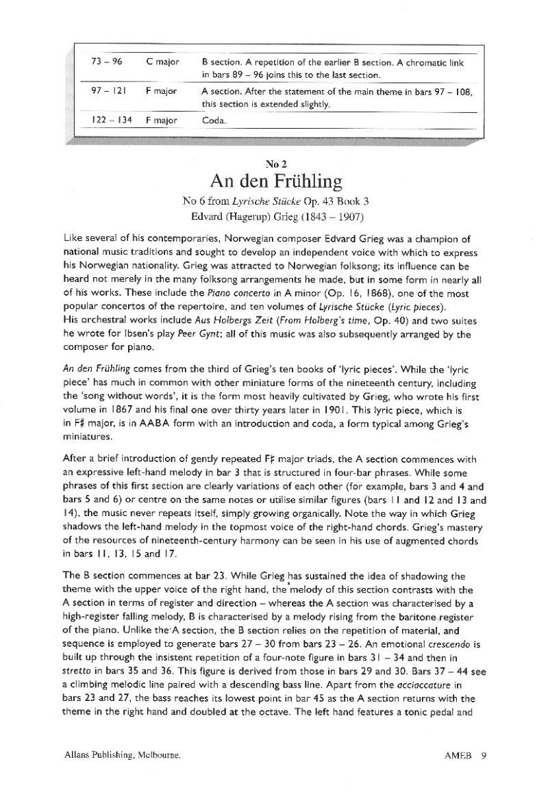 AMEB PIANO FOR LEISURE GRADE 8 SERIES 2 CD HANDBOOK Piano for Leisure Grade 8 Series 2 CD Recording & Handbook Publisher: AMEB Instrument: Piano Pages: 30 Series: 2