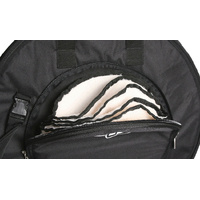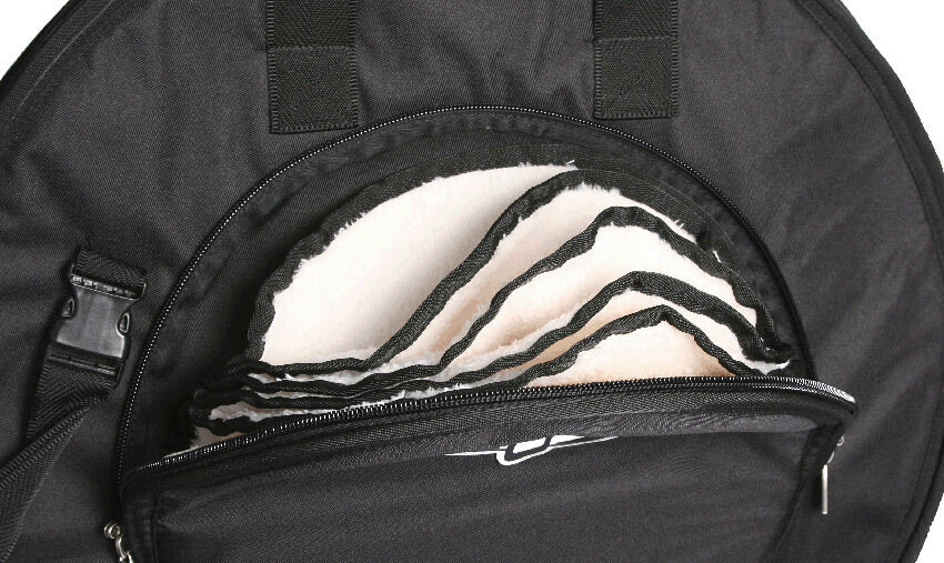 The Protection Racket 22" Deluxe Cymbal case has internal diameter of 22.5" for easy entry and exit of largest 22 cymbal. Outer hi-hat pocket is 15.5" and will accept hi-hats up to 15". Both the inner & outer compartments have removable Propile synthetic