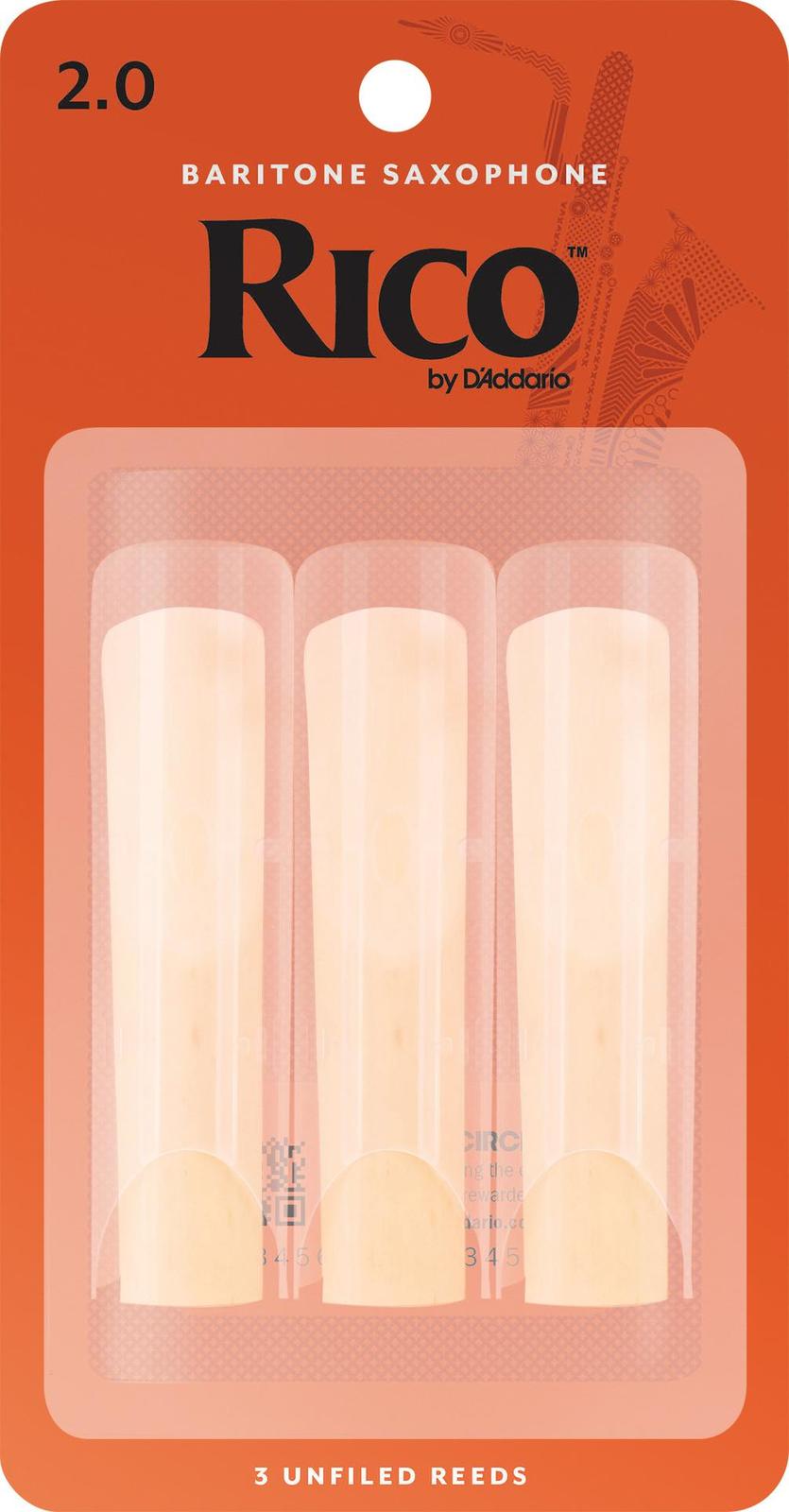 Rico Baritone Sax Reeds, Strength 2.0, 3-pack