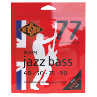 Jazz Bass 77 The flatwound bass string that’s been awarded many accolades since its inception in 1966. Wound with the premium alloy Monel, Jazz Bass strings sound deeper and offer more resistance than the more commonly used stainless steel wrap. Flat out success Across the globe, players choose Jazz Bass flatwound strings for a full tone that retains its clarity. The distinctive sound and red silk ends of these strings have been revered by iconic bassists such as Roger Waters, Phil Lynott, Sting, John Deacon, Dee Murrey, and Glen Matlock. Mighty Monel Monel is an alloy of nickel and copper and brings to our strings the benefit of a strong tone and resistance to corrosion. The build spec remains a close kept secret but the Monel 400 tape used in Jazz Bass 77 strings brings out their true character over the much less costly flattened stainless steel. Great British quality Manufactured in the UK to precise tolerances and using only the finest materials, you can rely on Rotosound strings for consistent tone and performance in every packet. Iconic music strings This innovation continues Rotosound’s proud legacy of cutting-edge string design that started with our roundwound strings in the sixties. Developed in conjunction with some of the world's top artists, Rotosound strings are synonymous with timeless tone, longevity and rock history. Started in 1958 by James How, an engineer who made strings for his own instruments, Rotosound became known around the world for its superior quality products and famous endorsees such as Jimi Hendrix, Pink Floyd, and Queen to name just a few. The Who’s John Entwistle started a long partnership with James and helped develop the Swing Bass roundwound strings which have become the industry standard. Gathering the most prominent artists over the following decades from Jaco Pastorius to The Edge, Oasis to Guthrie Govan, Rotosound has been the go-to string for every music generation. Scale length 30.5"-32", string length 35.25" Flatwound bass guitar strings Perfect for Soul and Classic Rock Deep, warm tone Corrosion resistant Handmade in Britain Factory-fresh foil packaging Medium scale Monel flatwound bass guitar strings Part No. Gauge C-0 G-1 D-2 A-3 E-4 B-5 RSM77 Jazz Bass 77 Hybrid .040 .060 .080 .100 RS77S Jazz Bass 77 Short Scale .040 .050 .075 .090 RS77M Jazz Bass 77 Medium Scale .040 .050 .075 .090 RS77LD Jazz Bass 77 Standard .045 .065 .085 .105 RS775LD Jazz Bass 77 5-String Standard .045 .065 .085 .105 .130 RS776LD Jazz Bass 77 6-String Standard .030 .045 .065 .085 .105 .130 RS77EL Jazz Bass 77 Extra Long Scale .045 .065 .085 .105 RS77LE Jazz Bass 77 Heavy .050 .075 .095 .110