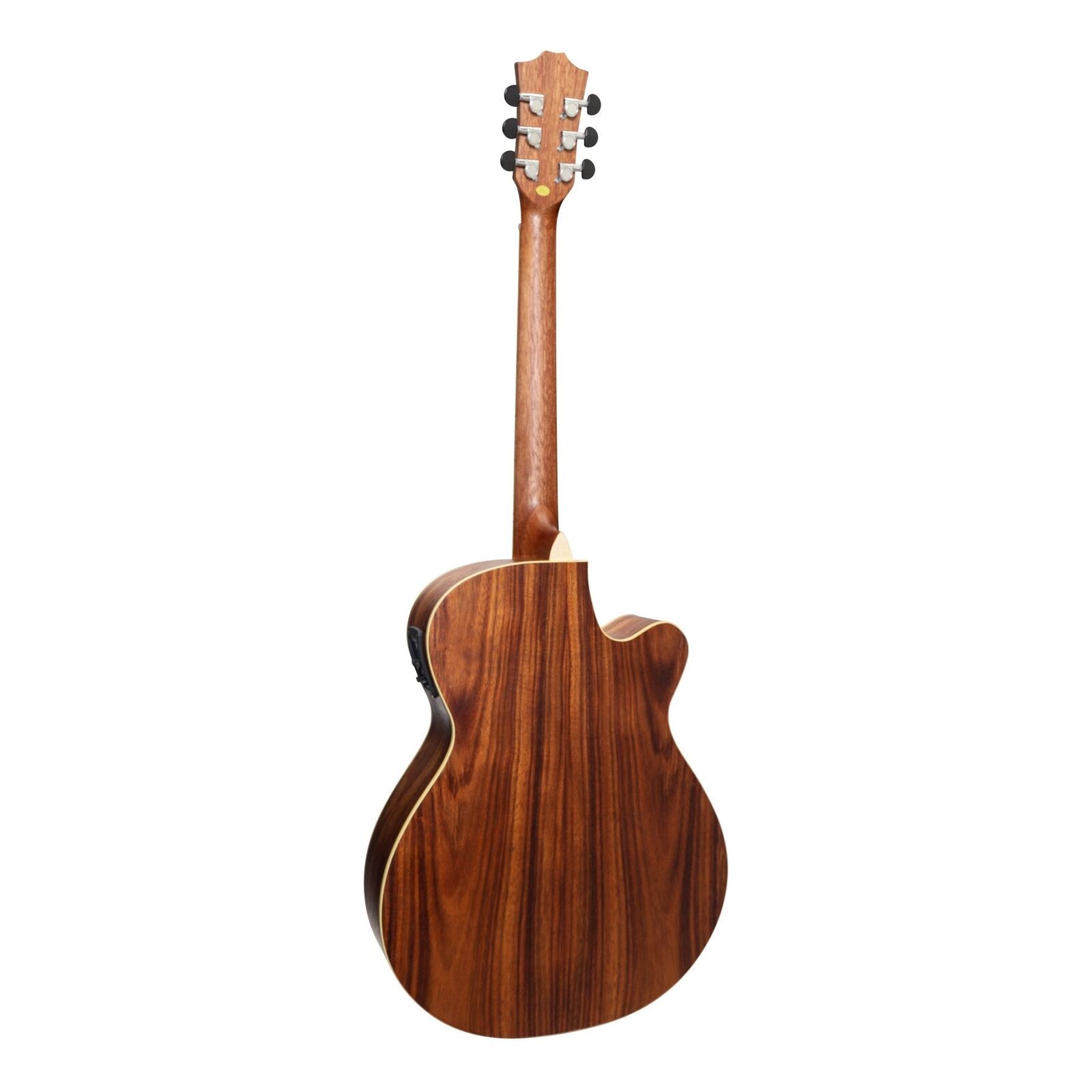 Sanchez guitars are perfect for students or those on a budget. The newly refreshed Sanchez steel-string acoustic guitar range are better than ever, with all new timber options and offering construction, sound and playability well above their price point. Available in a range of body shapes, including cutaway models, there's a Sanchez guitar to suit every player! BRAND: SANCHEZ MODEL: SFC-18L-RWD INSTRUMENT: ACOUSTIC GUITAR SHAPE: SMALL-BODY COLOUR: NATURAL SATIN DEXTERITY: LEFT STRINGS: 6 STRING TYPE: STEEL TOP: LAMINATE ROSEWOOD BACK / SIDES: LAMINATE ROSEWOOD NECK: MAHOGANY FINGERBOARD: ROSEWOOD BRIDGE: ROSEWOOD BRIDGE SADDLE: 76mm SCALE LENGTH: 25.5" NUT WIDTH: 43mm MACHINE HEADS: SANCHEZ FRETS: 21 PICKUP: SANCHEZ K3T WARRANTY: 1 YEAR LENGTH: 1035mm DEPTH: 95mm WAIST: 240mm UPPER BOUT: 290mm LOWER BOUT: 390mm WEIGHT: 1.8 kg