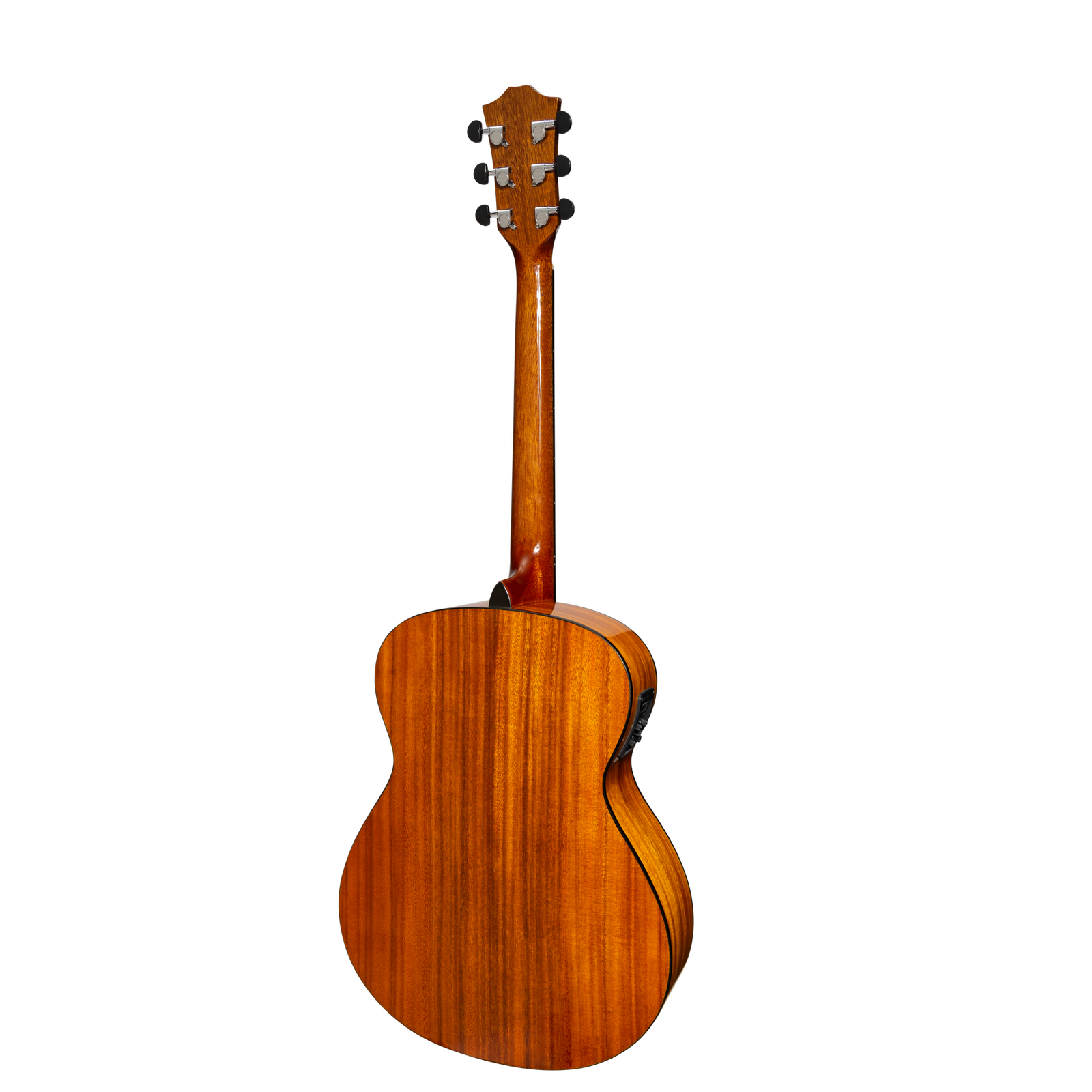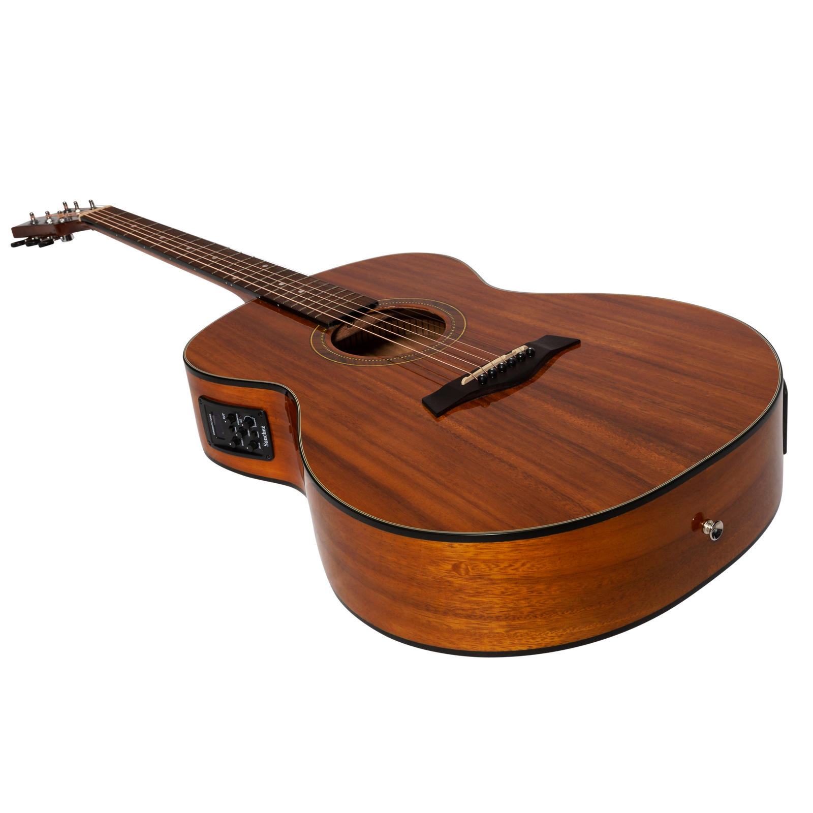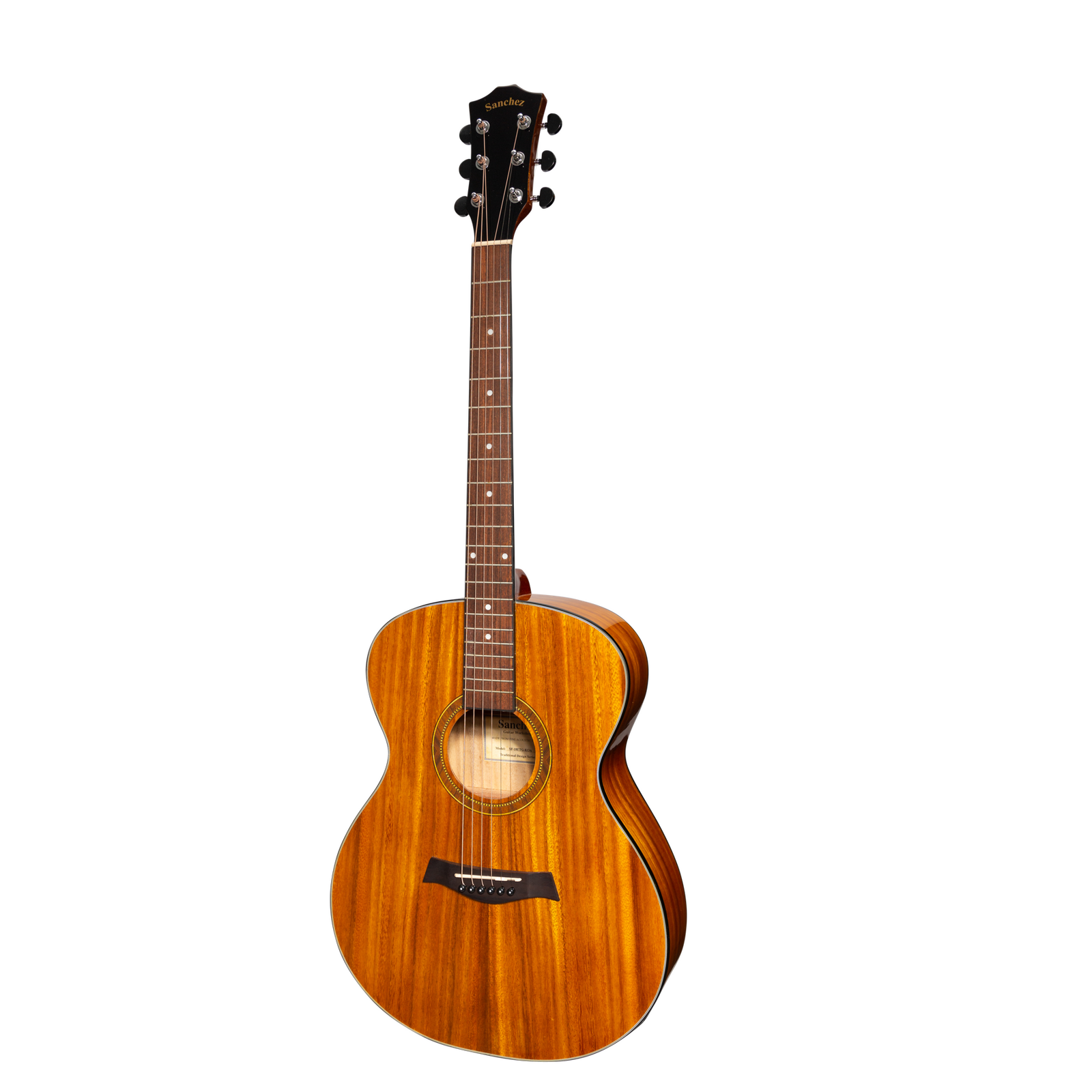 Sanchez guitars are perfect for students or those on a budget. The new gloss finished Sanchez steel-string acoustic guitar range are better than ever, with all new timber options and offering construction, sound and playability well above their price point. Available in a range of body shapes, including cutaway models, there's a Sanchez guitar to suit every player! BRAND: SANCHEZ MODEL: SF-18ETG-KOA INSTRUMENT: ACOUSTIC GUITAR SHAPE: SMALL-BODY COLOUR: GLOSS DEXTERITY: RIGHT STRINGS: 6 STRING TYPE: STEEL TOP: LAMINATE KOA BACK / SIDES: LAMINATE KOA NECK: MAHOGANY FINGERBOARD: ROSEWOOD BRIDGE: ROSEWOOD BRIDGE SADDLE: 76mm SCALE LENGTH: 25.5" NUT WIDTH: 43mm MACHINE HEADS: SANCHEZ FRETS: 21 PICKUP AND TUNER: SANCHEZ K4T LENGTH: 1035mm DEPTH: 95mm WAIST: 240mm UPPER BOUT: 290mm LOWER BOUT: 390mm WEIGHT: 1.8 kg