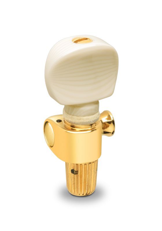 Banjo tuner as 5th tuning peg with self-locking worm gear, installation side of the neck All sealed tuners are lubricated with Schaller special grease for lifetime maintenance-free service. All parts are precision-crafted and surface-finished, the self-locking drive ensures an even, delicate and steady tuning. All string posts are made of high-grade brass and fitted into the housing with utmost precision, ensuring the best possible tuning accuracy and wear resistance. Technical specifications Gear ratio: 1:8 Weight: 27g (Galalith) Maximum string gauge: 0.064 inch / 1,63 mm Scope of supply Tuner without addional mounting accessories