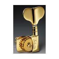 Schaller Bass "M4S Series" Open backed machine heads featuring oversized gear wheels, heavy duty shafts and large case buttons for a comfortable feel. Gear ratio: 1:22. M4SG Gold (2 a side)