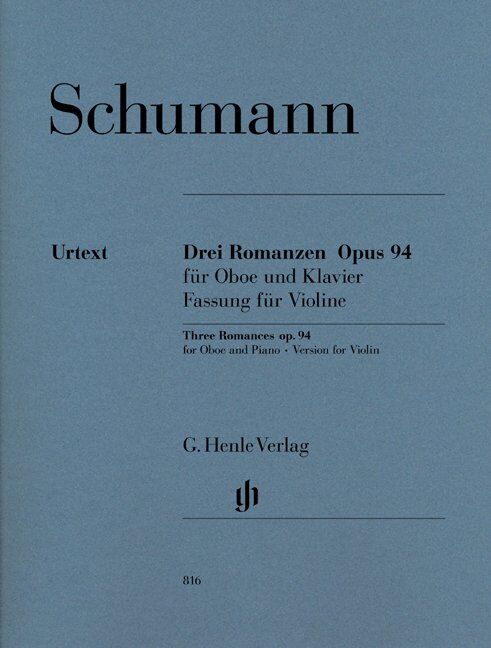 In 1849 Schumann endowed three wind instruments with chamber music works: the clarinet with the “Three Fantasy Pieces” op. 73, the horn with the “Adagio and Allegro” op. 70 and the oboe with the present “Three Romances” op. 94. However, the “Three Romances” for oboe also appeared on the market at that time with a solo part for violin or clarinet. Violinists are certainly very happy that G. Henle Publishers have followed this idea of an alternative scoring. The manuscript, which Robert presented to his wife Clara as a Christmas gift in 1849, has not been preserved. However, it was possible to consult autograph drafts for our Urtext edition, which helped rectify many of the incongruities of the 1851 first edition. 3 Romances Op. 94 Composer: Robert Schumann Publisher: G. Henle Verlag Instrument: Violin Pages: 32