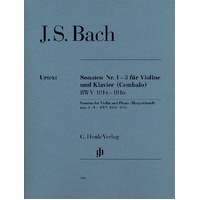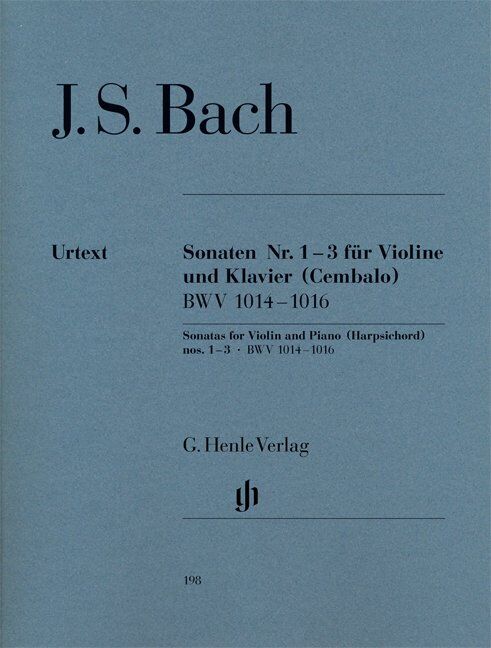 An authoritative Urtext edition with marked and unmarked violin parts of Johann Sebastian Bach's Sonatas for Violin and Piano (Harpsichord) 1-3 BWV 1014-1016. Sonatas for Violin and Piano (Harpsichord) 1-3 BWV 1014-1016 Composer: Johann Sebastian Bach Publisher: G. Henle Verlag Instrument: Violin Pages: 106