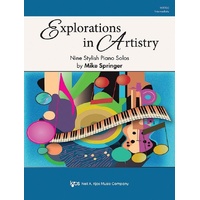 This is a unique collection with each of the nine solos having a distinct sound and texture allowing students to explore the artistic elements appropriate to the style of each piece. Whether exploring modal sounds in Celtic Legend, the lyrical beauty of Dawn's First Light, the grand, mysterious sounds of Chaco Canyon, or the light-hearted swing in Energized, students and teachers alike will be delighted with the variety of styles and artistry found here. Explorations in Artistry - Intermediate Composer: Mike Springer Publisher: Neil A. Kjos Music Company Instrument: Piano Format: Piano Solo Pages: 24