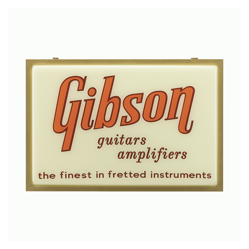 This sign was inspired by the design of a rare vintage Gibson Guitars & Amplifiers dealer sign from days gone by. Combining retro style with modern features like LED backlighting, this Gibson Vintage Lighted Sign will be a stylish addition to your music r