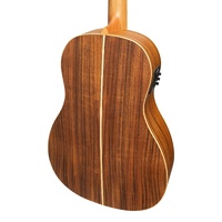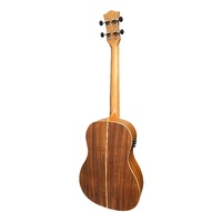 The Tiki range of ukuleles by Timberidge are fast becoming one of the chosen brands by professional uke players throughout Australia and the rest of the world. Tikis are known for outstanding craftsmanship and superior wood selection which contribute to exceptional playability and brilliant tone. The Tiki TKB-3P-NST '3 Series' Baritone Ukulele features a Koa wood top, back & sides, Mahogany neck, Rosewood fingerboard, and chrome open back tuners with black buttons, superbly finished with deluxe timber binding, rosette, heel plate and back strip. The built-in Tiki UK-500T pickup provides 3-Band EQ, volume control and a chromatic LED tuner, giving you the option of plugging into an amplifier, PA system and a wide range of recording devices. Also included is a Tiki padded gig bag to ensure your new uke is well protected. BRAND: TIMBERIDGE TIKI MODEL: TKB-3P-NST INSTRUMENT: ELECTRIC UKULELE SIZE: BARITONE COLOUR: NATURAL SATIN DEXTERITY: RIGHT STRINGS: 4 STRING TOP: KOA BACK / SIDES: KOA NECK: MAHOGANY FINGERBOARD: ROSEWOOD BRIDGE: ROSEWOOD BRIDGE SADDLE: 52 mm SCALE LENGTH: 20 INCHES NUT WIDTH: 37 mm MACHINE HEADS: TIKI PICKUP SYSTEM: TIKI UKT-500T BUILT IN TUNER: Y FRETS: 19 WARRANTY: 2 YEARS INCLUDES CASE: PADDED GIG BAG LENGTH: 770 mm DEPTH: 85 mm UPPER BOUT: 195 mm LOWER BOUT: 260 mm WEIGHT: 0.8 kg