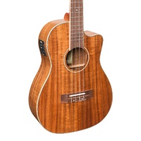Tiki '9 Series' Koa Solid Top Electric Cutaway Baritone Ukulele with Hard Case Natural Satin