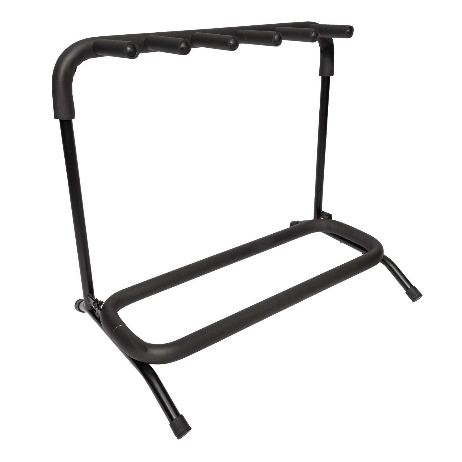 The Tiki TUR-5 Multi-Rack Ukulele Stand offers an easily transportable multiple ukulele stand solution in a foldable, light weight and durable design. Whether it's at home, on stage or in the studio, the Tiki multi-rack keeps your musical invests safe with its heavy duty steel frame and soft rubber foam protective sleeving. Dimensions: W: 595mm H: 500mm D: 360mm