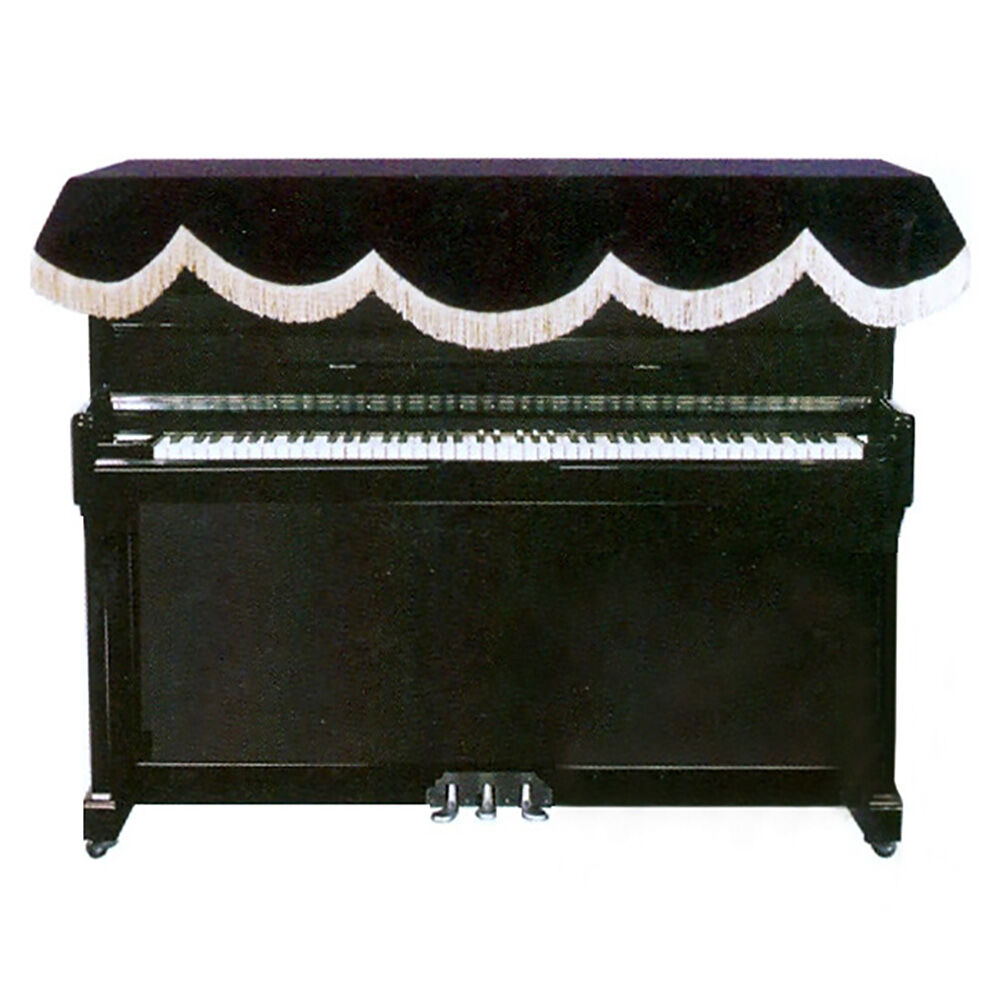 Decorative dust cover for top of upright pianos. The black synthetic velour is finished with an attractive tasseled edge.