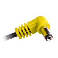 3050 CIOKS Flex 3 – 50cm (20?) with 5,5/2,5mm centre negative angled DC plug (yellow) Type 3 – centre negative 5,5/2,5mm plug Type 3 Flex cable is yellow and fitted with a centre negative 5,5/2,5mm DC plug. This is the cable you need if you want to power a Line6 Stomp from the CIOKS DC7 – simply combine this Flex cable with the Parallel Adapter Flex and you are good to go. Apart from the Line6 Stomp pedals, this type of plug is very rarely seen with pedals. Three pedals we know use this standard and these are T-Rex Spindoctor, Line 6 AMPLIFi FX100 and Digitech JamMan Solo XT where the last one is not even for sure. JamMan Solo XT needs for sure a centre negative DC plug but we had a client who couldn’t fit in the standatd 5,5/2,1mm plug so we’ve made this yellow one with same standard BOSS polarity but for the larger 2,5mm pin. It’s only avaliable with angled (L-shaped) plug and only in 50cm length. If you have green Flex cables to supply say your Eventides with 12V DC and would like to use another colour for an AC pedal which also has a 2,5 pin socket you can use this cable so you can distinguish them. With AC pedal the polarity doesn’t matter.