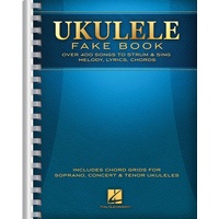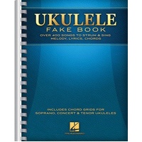 This collection is nearly bigger than your uke! Over 400 songs packed into one convenient songbook that lets you play all the songs you've ever wanted to, including: All Shook Up • Blowin' in the Wind • California Dreamin' • Don't Worry, Be Happy • Edelweiss • Free Fallin' • Georgia on My Mind • Hallelujah • Hey, Soul Sister • Hotel California • Imagine • Jambalaya • Kokomo • Lean on Me • Margaritaville • Over the Rainbow • Proud Mary • Que Sera, Sera • Rolling in the Deep • Singin' in the Rain • Stand by Me • Tears in Heaven • Ukulele Lady • Viva La Vida • What a Wonderful World • Your Cheatin' Heart • Zip-a-Dee-Doo-Dah • and hundreds more! Includes chord grids for soprano, concert and tenor ukuleles. 9″ x 12″ comb bound. Ukulele Fake Book Publisher: Hal Leonard Instrument: Ukulele Format: Melody Line, Lyrics & Chords Pages: 688