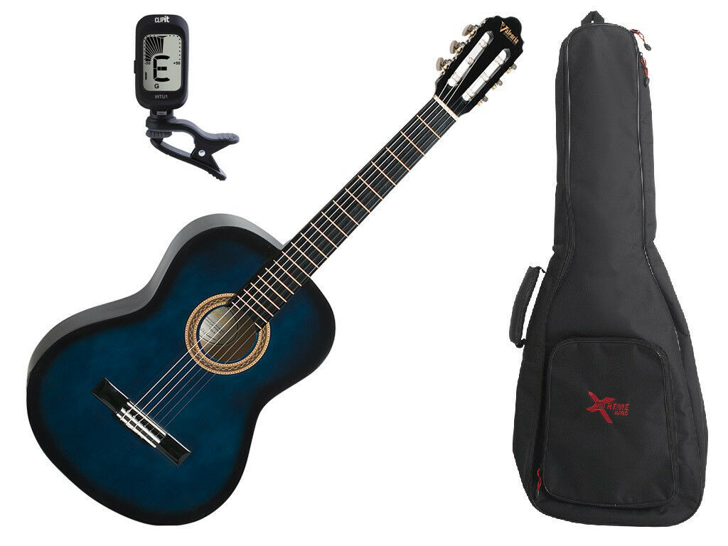 This Blue 4/4 Classical Acoustic Guitar has a Basswood top, back and sides. Exceptional quality and great value, this guitar produces a fantastic tone and is a pleasure to play. Tuner Features Guitar Features.