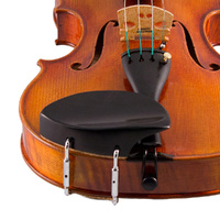 Violin Chinrest “Teka” style. Ebony – Large model 4/4-3/4. A high set rest with medium cup. Sits slightly over tailpiece. Standard clamp. Excellent comfort and security.