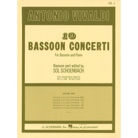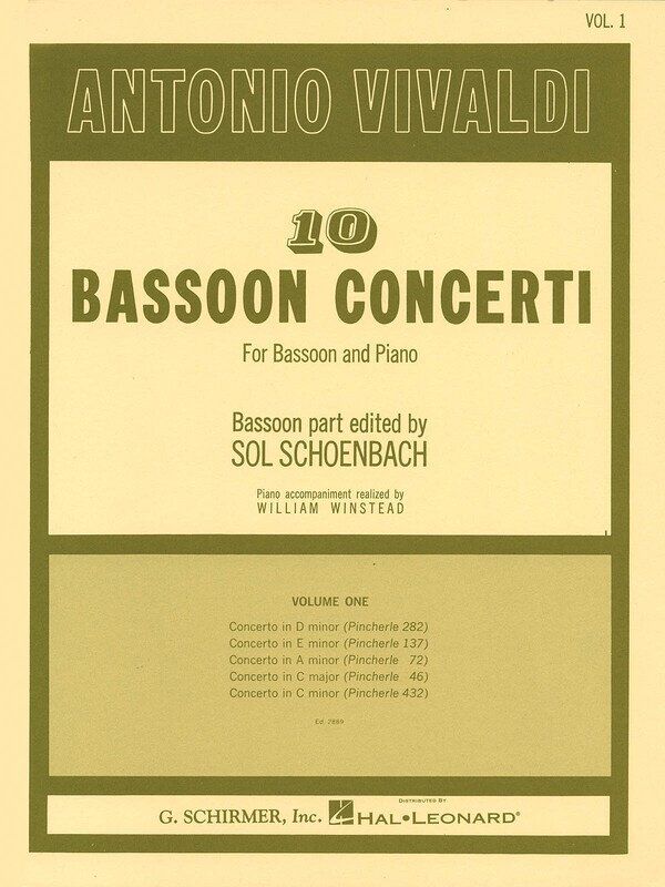 Contents: Concerto in D minor (Pincherle 282) • Concerto in E minor (Pincherle 137) • Concerto in A minor (Pincherle 72) • Concerto in C Major (Pincherle 46) • Concerto in C minor (Pincherle 432) Vivaldi - 10 Bassoon Concerti Vol. 1 Publisher: G. Schirmer, Inc. Instrument: Bassoon Pages: 88