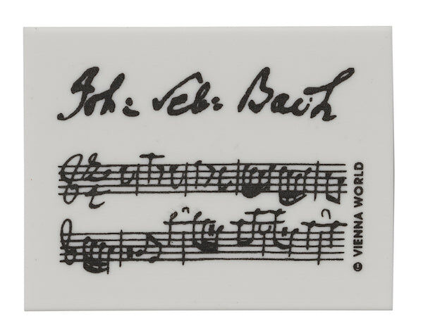 White Eraser with Bach Manuscript, 4.5 x 3.5 x 0.9 cm, European Manufacturing, Cellophane-Wrapped, Ideal for Artists and Students
