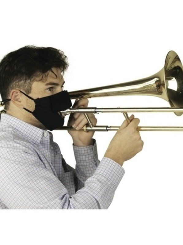 Made to meet the Performing Arts Aerosol Study Recommendations! This reusable and hand washable double-layer face mask for playing wind instruments helps reduce the spread of aerosols during instrument play, allowing the instrumentalist to play wit