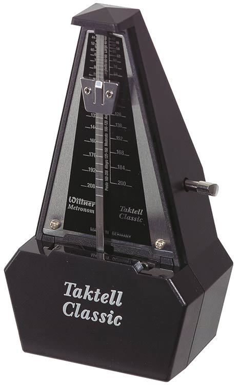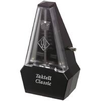 Plastic casing, Black/Silver coloured, without bell metronome with a mechanical clockwork, No batteries required, Made in Germany.