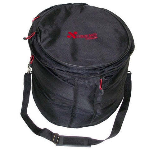 Xtreme 14” x 10" - 12" tom bag DA544. Heavy duty 1800D black nylon waterproof yarn. Reinforced interior lining with 5mm PE + 15mm foam padding. Easy carry handle and strap. Heavy duty zip. All tom, bass and snare bags feature a cymbal pocket for convenience. PVC window for name/tag card. Embroidered Xtreme logo.