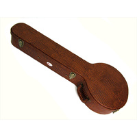 5 ply cross-grain plywood case covered in brown croc vinyl. Thick foam interior padding. Black, 7mm super plush lined. 5 deluxe drawbolt antique brass latches with lock. Imitation leather handle.