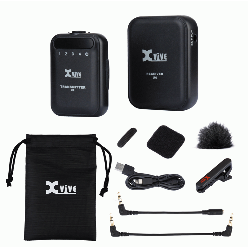 Xvive U6 Compact Wireless Microphone System - 1 Transmitter, 1 Receiver, 2.4 GHz, 90ft Range, 4 Channel Options