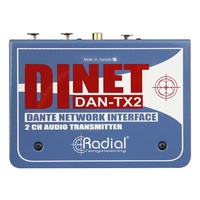 The DiNET DAN-TX2 is the expanded version with Neutrik Ethercon connectors, XLR Combo, RCA and 3.5mm analog inputs