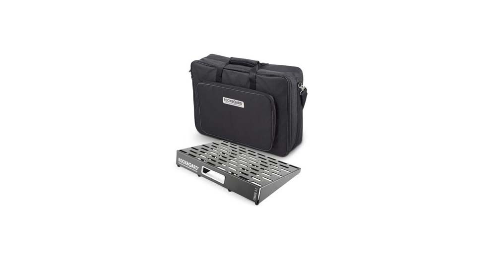 THIS PRODUCT IS FOR ONLINE ORDER ONLY. Rockboard pedal board for approx. 10 to 20 effects pedals (depending on size) inc gig bag - sturdy and light aluminium construction - slotted design for easy pedal mounting - mounting holes for LED Light (not included) on both sides - made from 1 cold-rolled aluminium sheet - additional U-shaped support brace for added rigidity- 10 degrees board surface - no weld seams- slot for MOD patch bays - compatible with The Tray - universal PSU mounting solution- robust black powder-coated surface - width 622 mm - depth 422 mm - height incl. rubber feet 37 - 71 mm - weight 3.95 kg - weight gig bag approx. 2.00g - interior dimensions gig bag (L x W x D) 660 x 455 x 150 mm - including self-adhesive hook (50 mm wide) & loop tape (25 mm wide) and cable ties